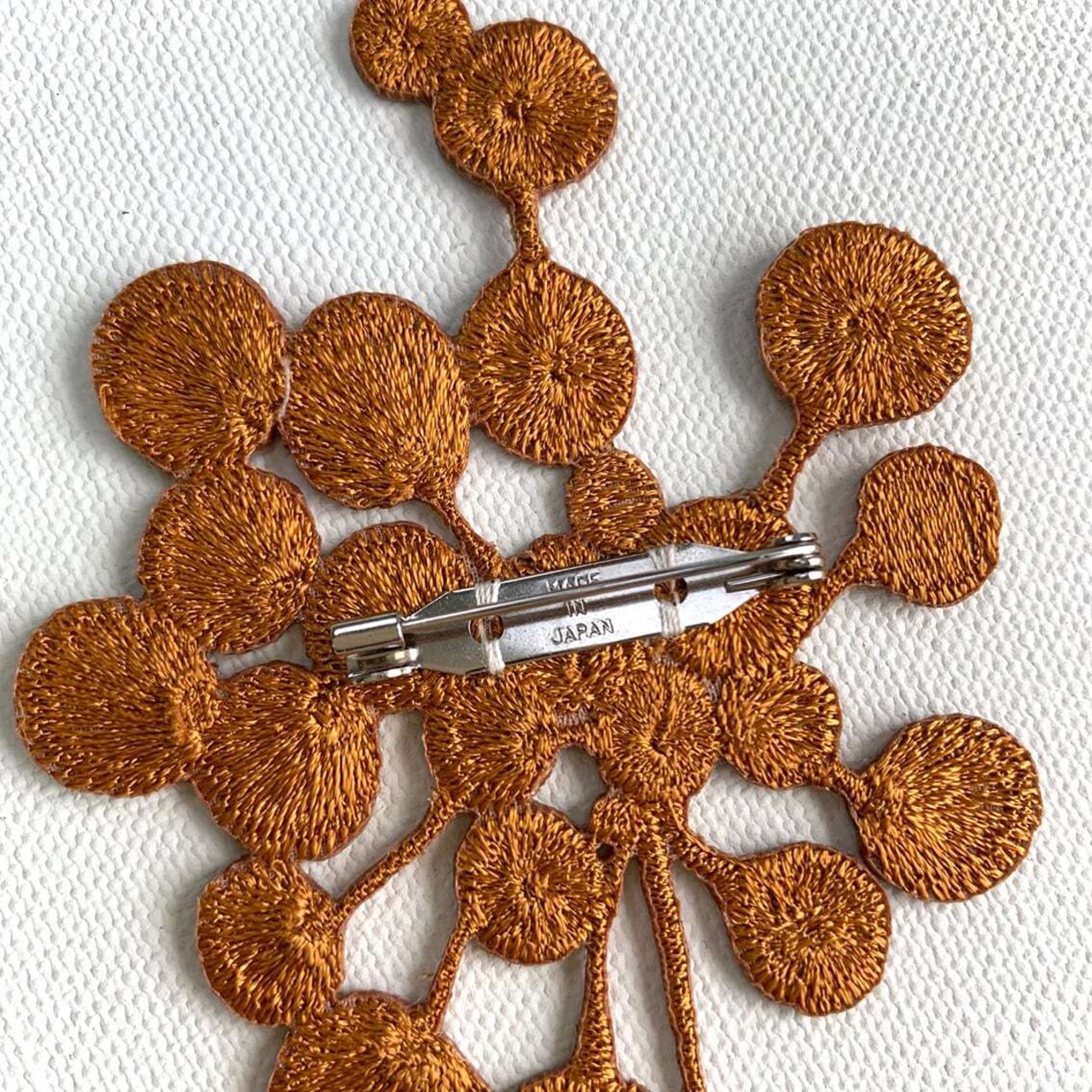 刺繍糸で出来た。発色のよいブローチです。