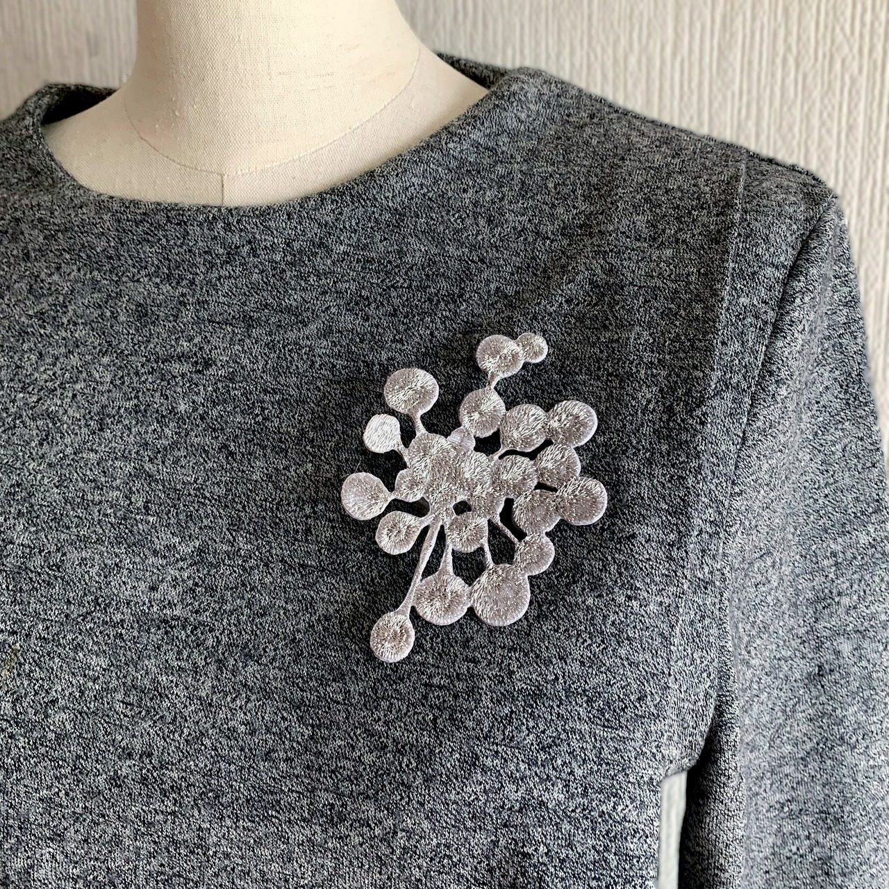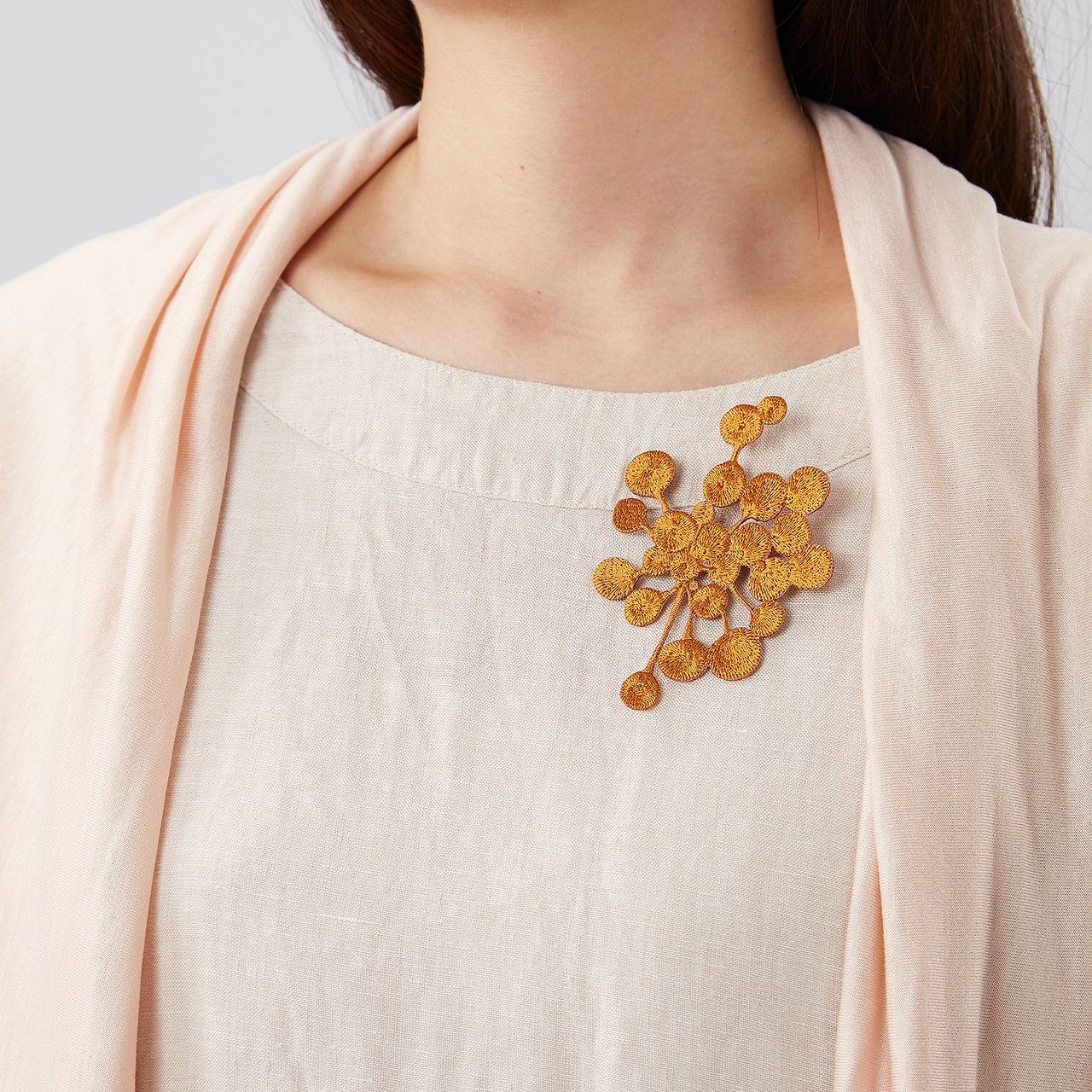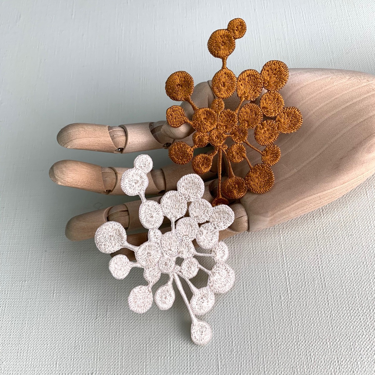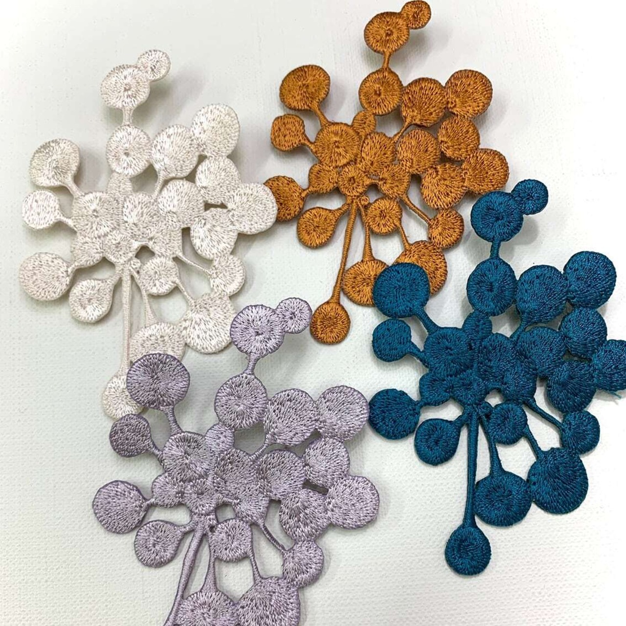 ヒバナのような形がお洋服やバッグのアクセントにも。